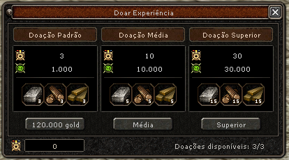 Cada membro da guilda pode fazer no máximo 3 doações diárias de experiência.