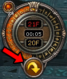 A seta arredondada abaixo do relógio é um botão que aparece sempre que um andar é finalizado. Ao pressioná-lo, você avança imediatamente para o próximo andar. Se estiver em grupo, somente o líder pode usar esse botão.